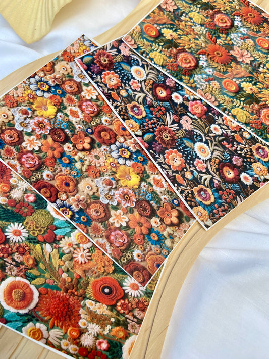 Embroidered Fall Florals Polymer Clay Transfer Sheet Bundle