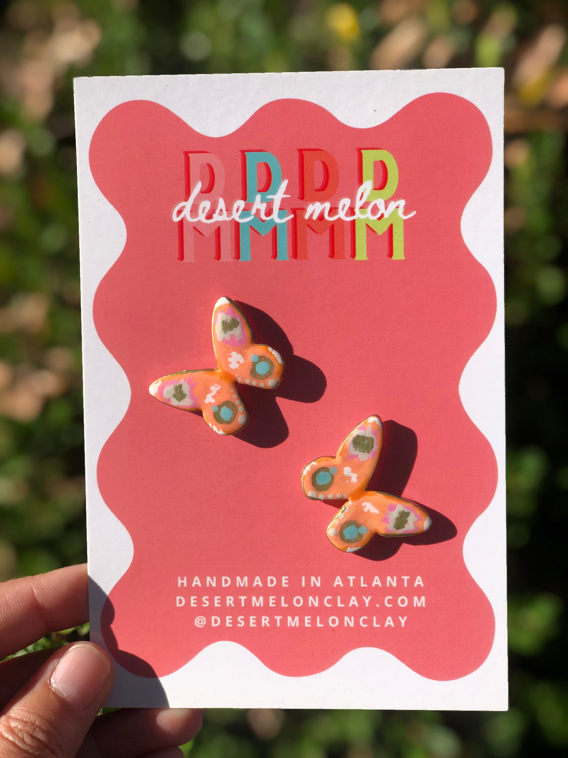 Hand-painted and one-of-a-kind these butterfly studs are sure to make a statement! Finished with gold-plated stainless steel posts.