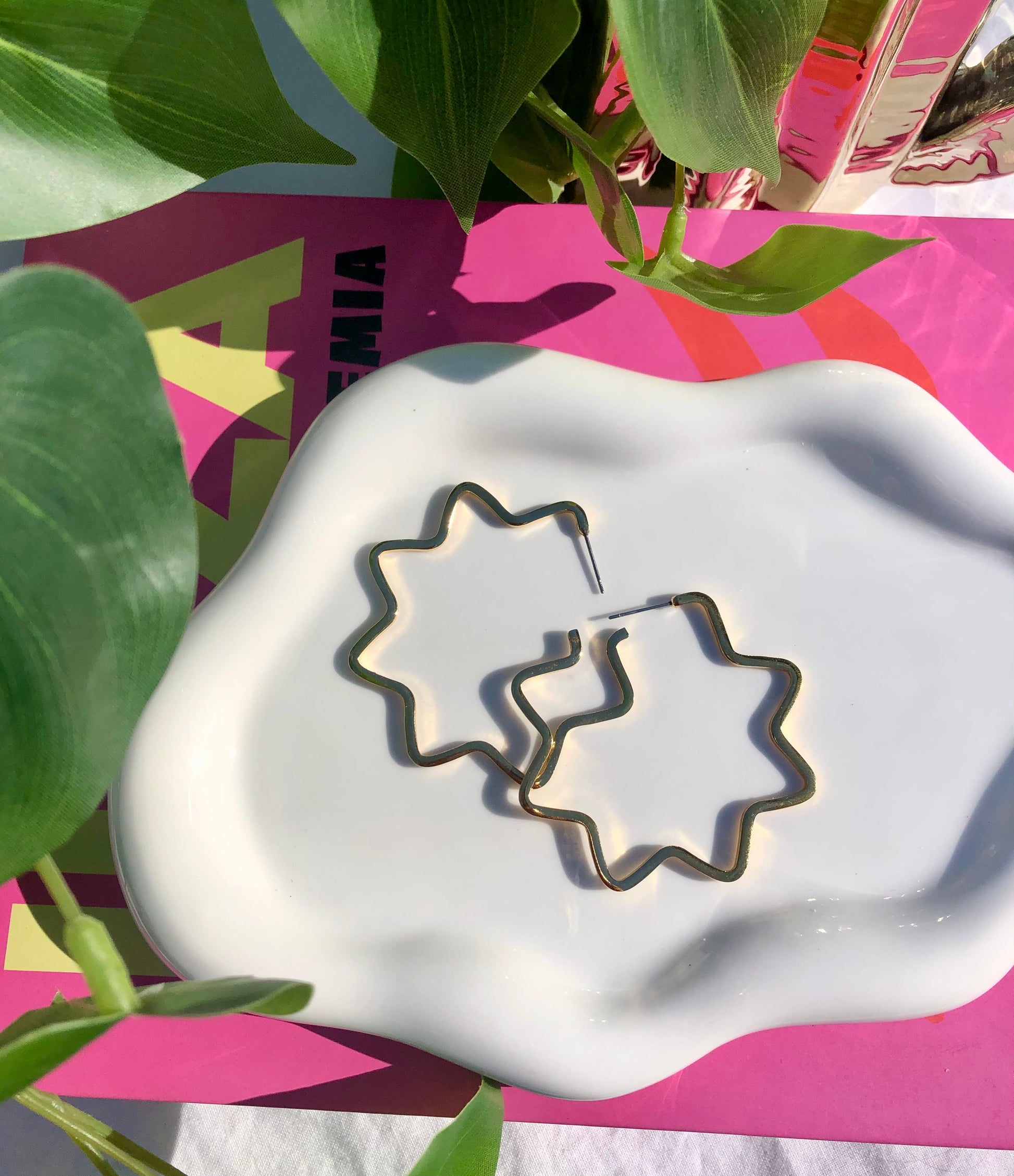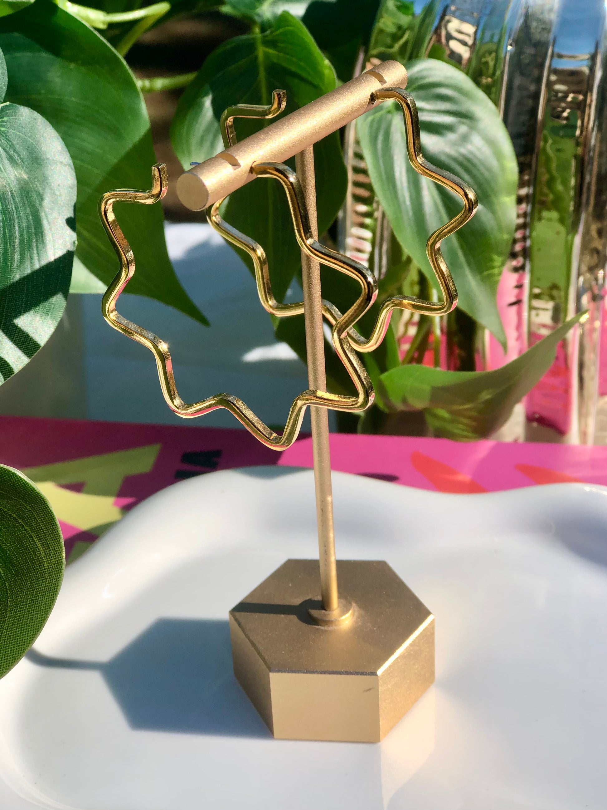 A fun twist on a classic hoop! Gold-plated stainless steel.